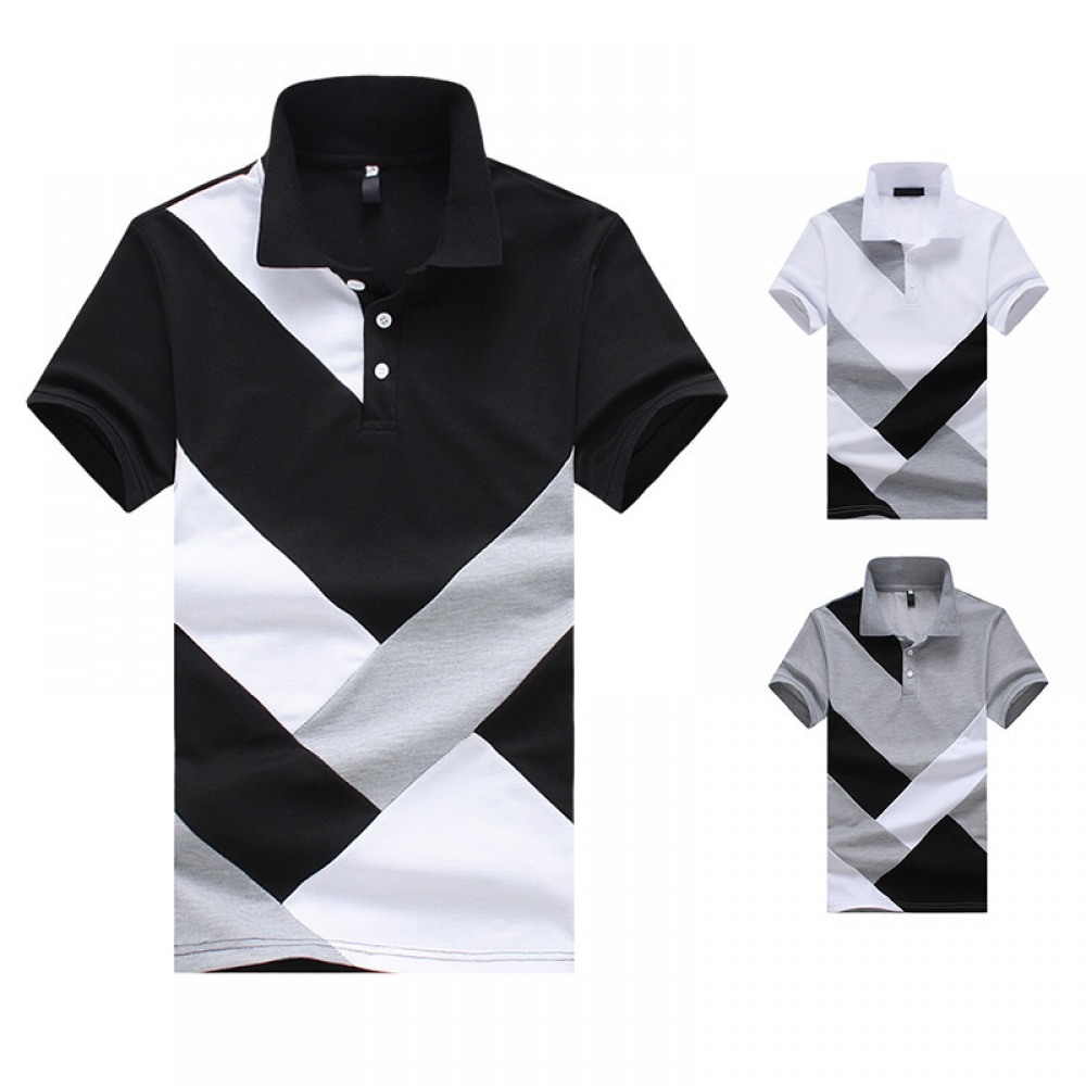 New Summer Men's Short-Sleeved T-Shirt Mens Contrast Striped Slim Casual T-Shirt