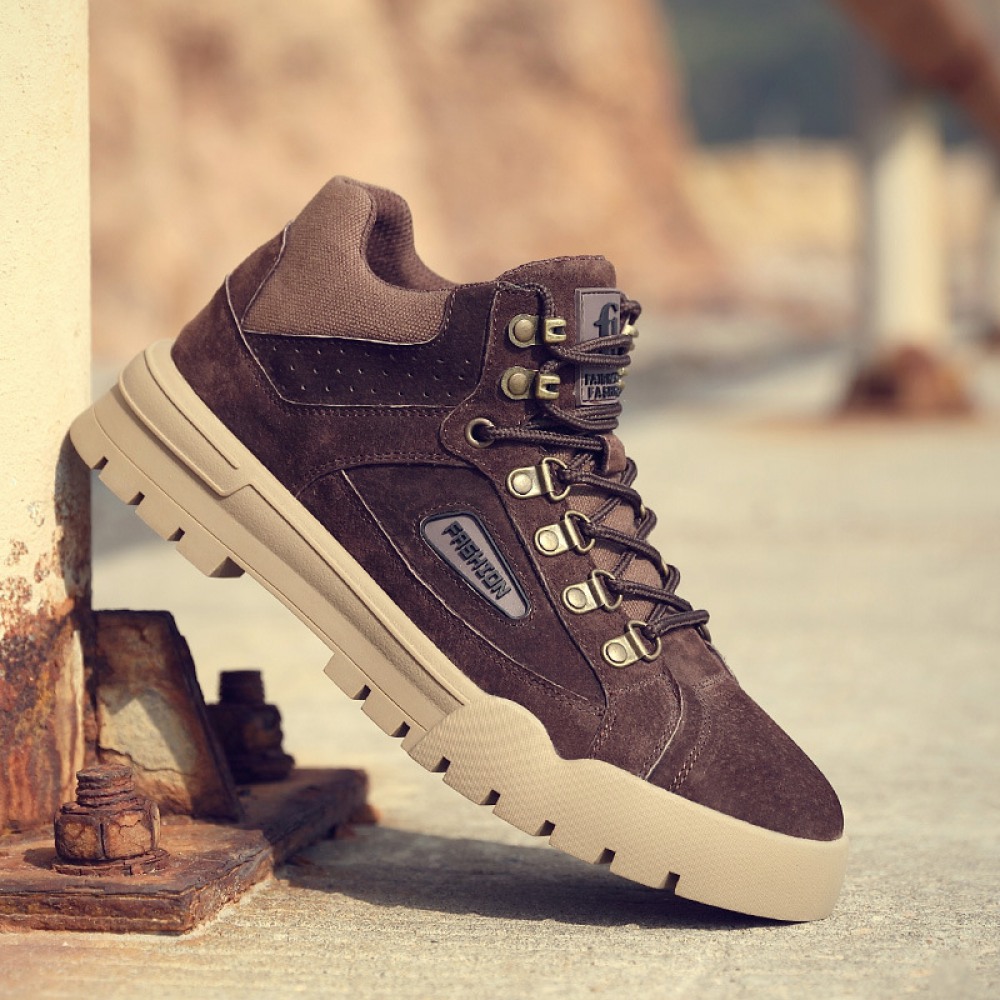 Men's Autumn New Fashion Casual Add Velvet Warm Leather High-Top Martin Boots