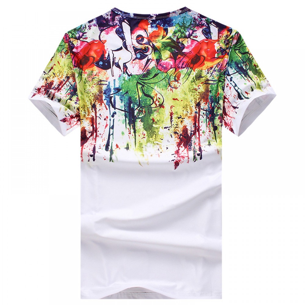 Flat Summer New Men's Graffiti Splash Paint Abstract Diy 3D Printing Short-Sleeved Round Neck T-Shirt