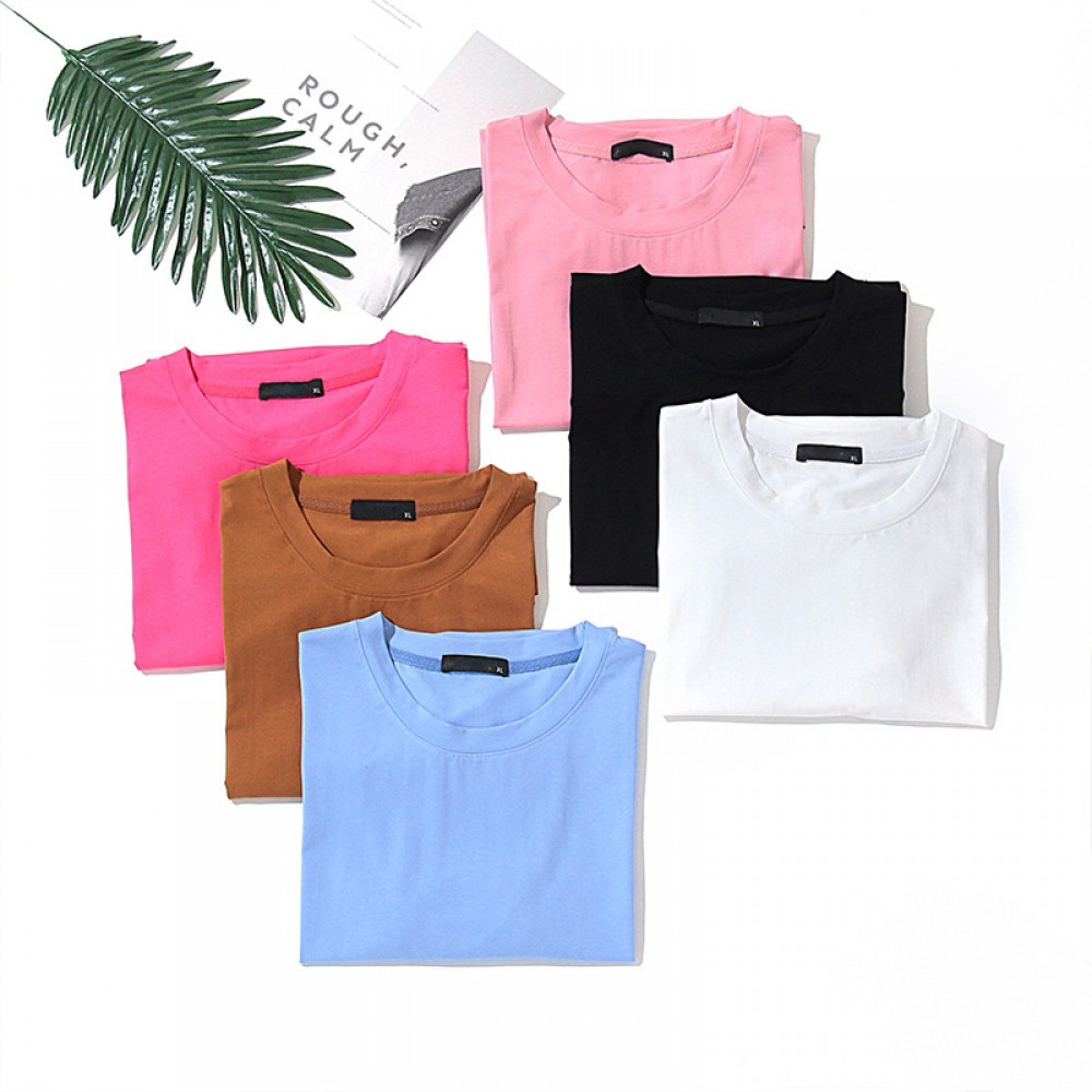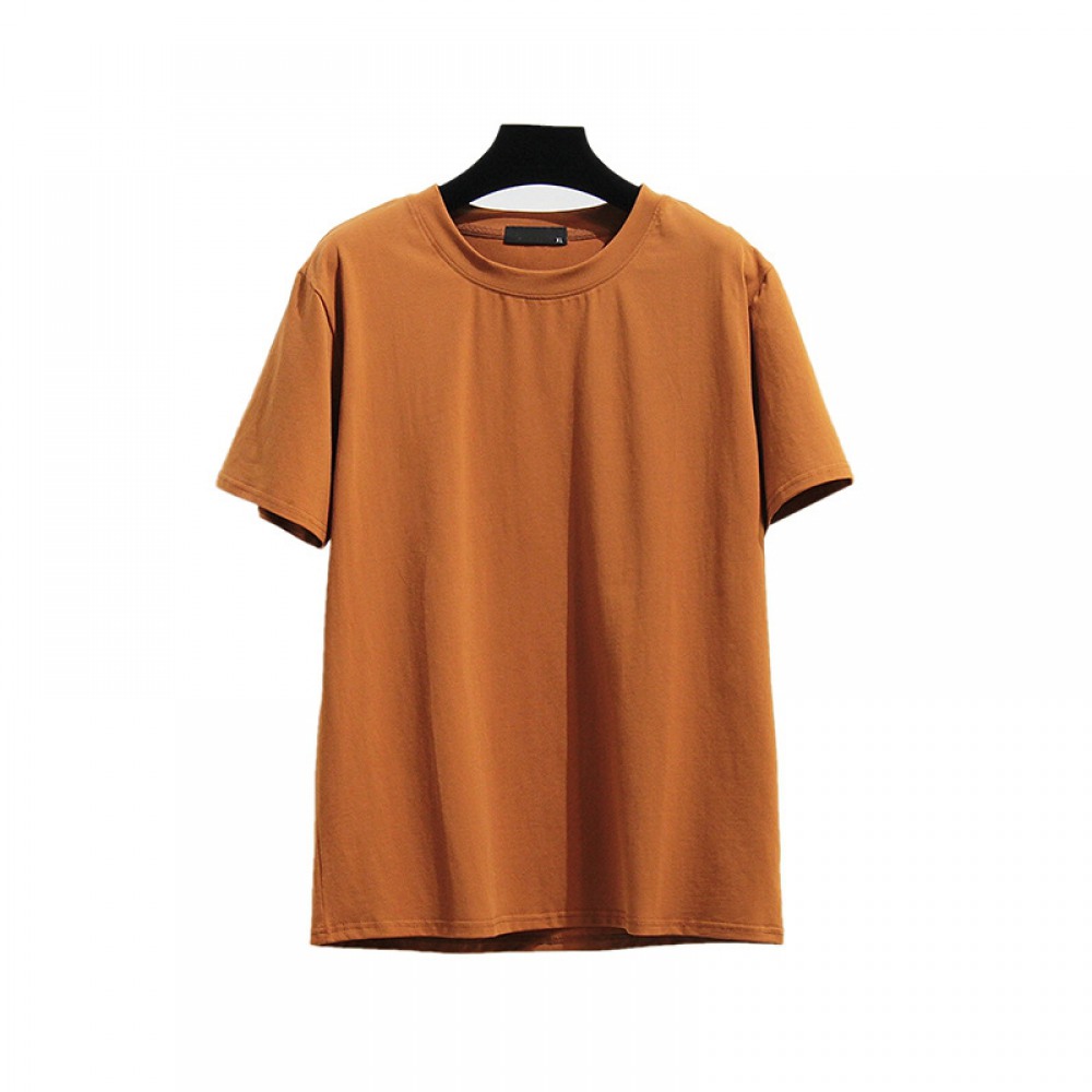 Plus Size Women's Summer Dress Fat New Solid Color Basic Round Neck Short Sleeve T-Shirt