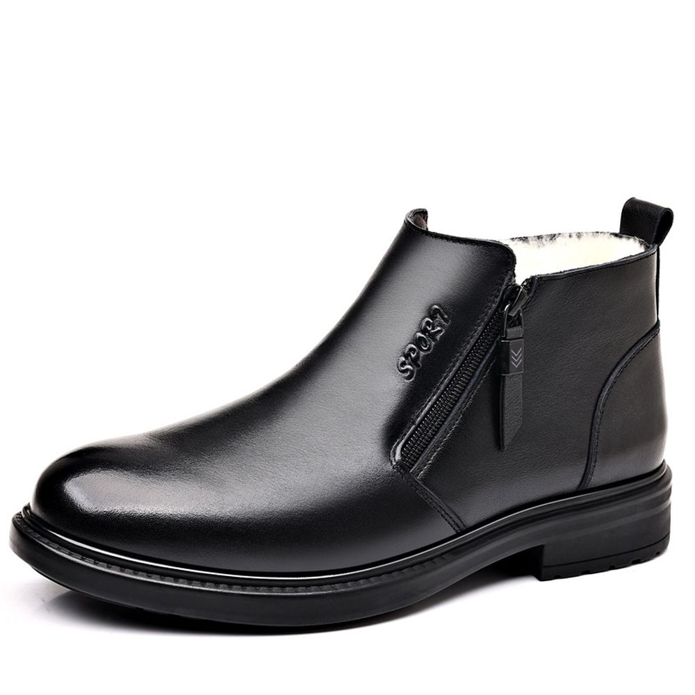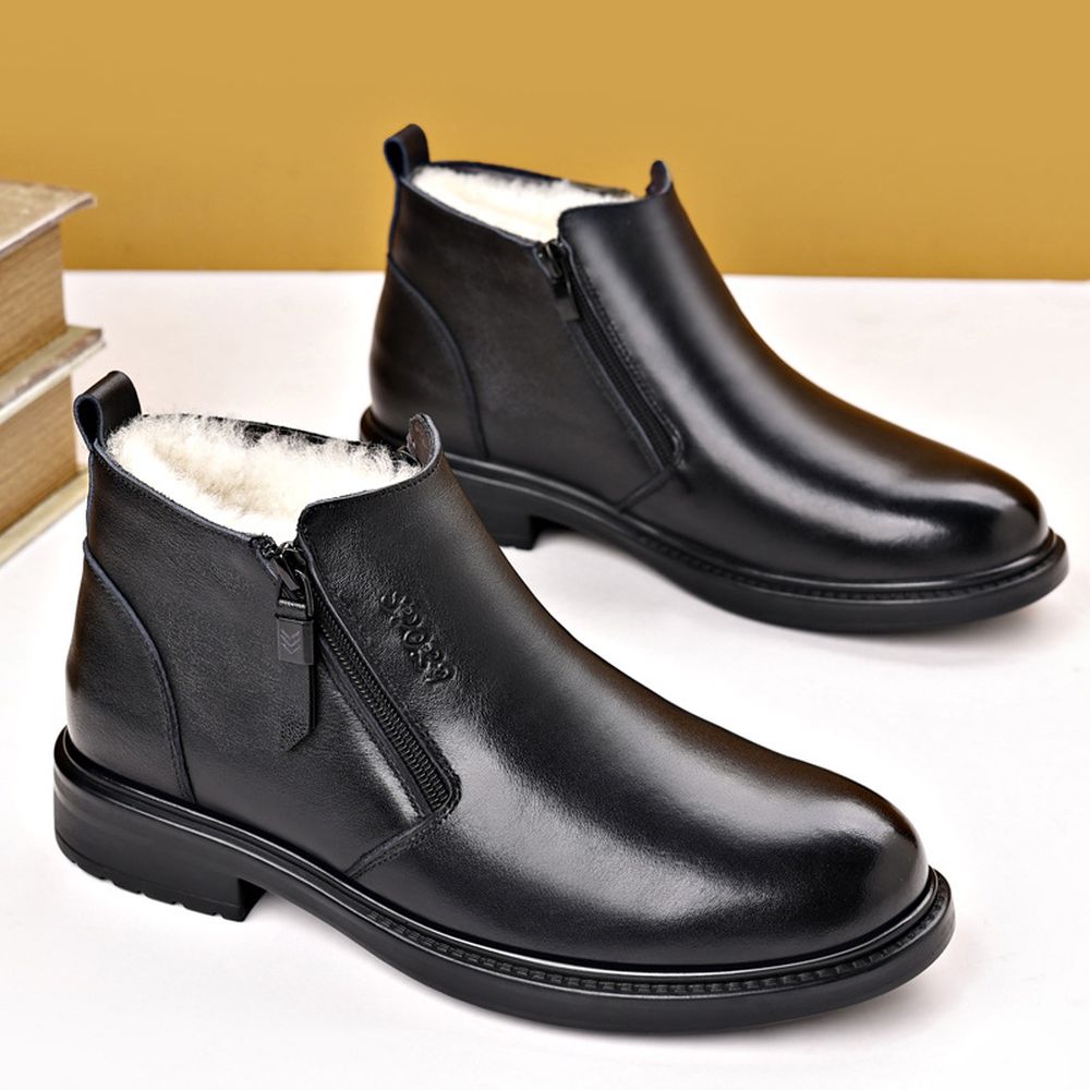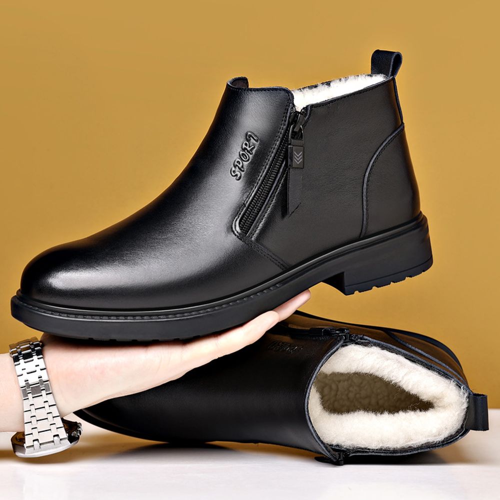 Winter Men's Cotton Shoes Casual Leather Shoes Velvet Warm Business Leather Boots